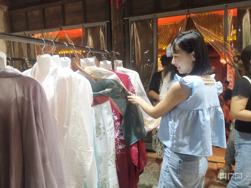 一位漂亮女士走进古装店,挑选着心仪的服装,迫不及待古装体验。“仓巷街游客体验汉服出行和穿汉服打卡景点的项目比较火热,今天人多,生意红火,游客也都乐在其中。”店铺老板告诉记者。