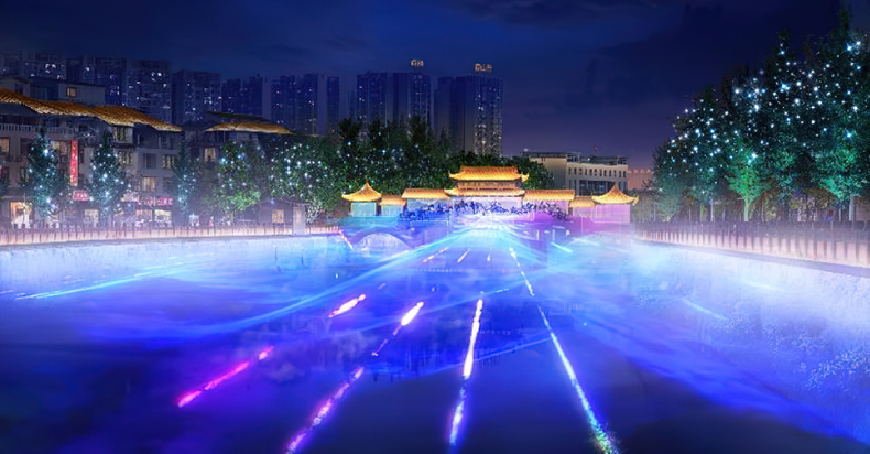 通过动态灯光、水纹投影、建筑轮廓描边等手法,赋予自然景观与历史建筑全新生命力。