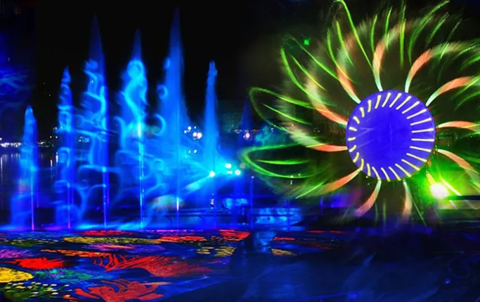 打造日夜联动的视觉盛宴,水秀拥有多种形式,水幕表演、数码水帘、音乐喷泉、水秀特效等,白天全景音乐喷泉带给游客唯美体验,夜晚运用水幕、激光、音乐等多媒体艺术为游客呈现电光流影,带来浸入式水秀灯光体验。