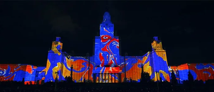 投影灯是目前灯光设计中自由度最高的一种。个性化投影,想投影什么效果都可以做出来,而且可以随时更换不同效果的场景图案;运用光学投影原理,采用高亮度的光源,将底片上的全彩投影内容投射到高层建筑的外墙上,在夜间形成极富视觉冲击力的户外投影内容。是目前文旅工程中很主流的一种融入到灯光设计中的元素。