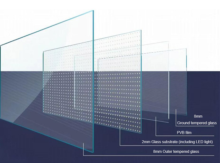 屏幕厚度:8+2+8mm钢化白玻璃