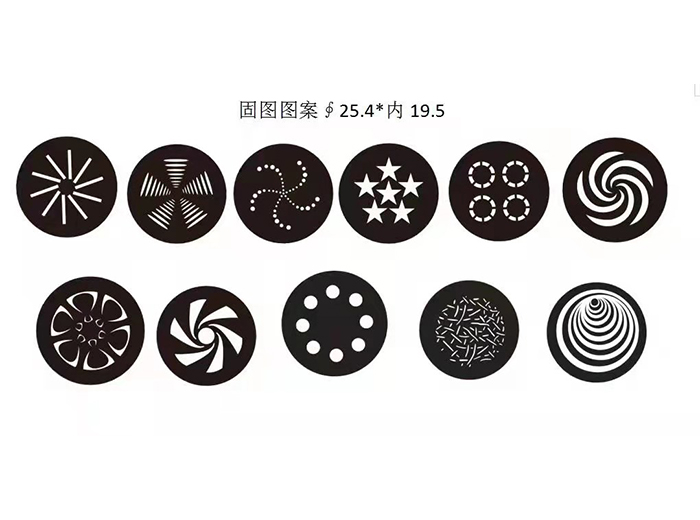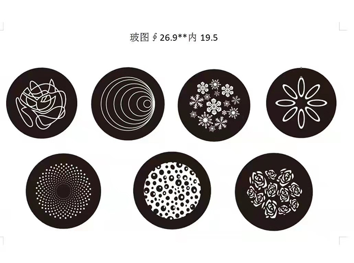 旋转图案:6个图案片(可插拔)外径27.9mm,有效直径16.5mm,厚度1.1mm